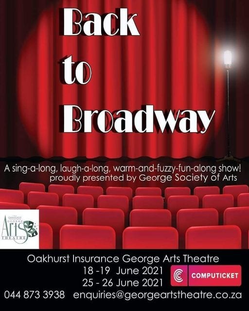 Back to Broadway. Join a FABULOUS group of singers, actors and talented youth and take a trip down the Oakhurst Insurance George Arts Theatre memory lane with live Broadway songs blended with visuals from the past at Back to Broadway.